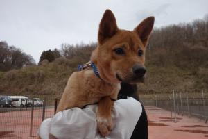 昨年末、職員から、温かい家庭で暮らせる方がいんげん も幸せではないか?という意見があり、譲渡犬として飼い 主さんを募集することにしました。 ←早くおろしてくれよ~ |