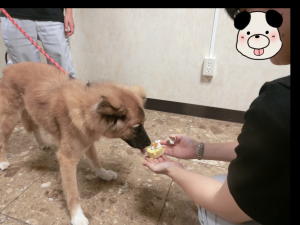まるは、二年前ハピまるで産まれました。ハピまるで育 てられ、その後ハピまる職員と一緒に獣医師派遣事業な どに参加し、動物愛護の推進に協力をしてくれました。 とはいえ、ハピまるがおうちと思っている、まるはお出 かけの時は、車に乗るのを躊躇し、必ずハピまる職員に お尻をツンとされるのが日課でした。 |