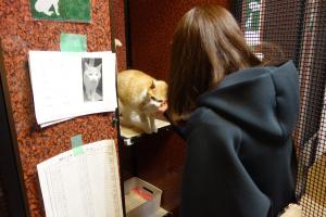 猫舎では譲渡前講習会を修了した方が、猫のマッチン グをしています。 一組ずつ、担当職員からそれぞれの猫の特徴をお伝 えします。限られた時間ですが、納得がいくまでマッチン グをしてもらいます。 家族として迎え入れてもらうためには、「かわいい」だけ ではなく、最期まで愛情を注いで飼うことができるか、慎 重に考えていただきます。 詳しい譲渡のながれは、お問い合わせください。 |