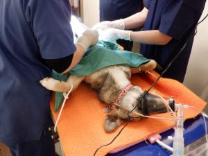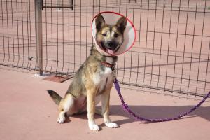次の日、朝一でちびの様子を見に犬舎へ。 扉を開けたら、相変わらずの変な顔(うまく撮れたら、ご 紹介します)でお出迎えをしてくれました。 ちび、よく頑張ったね~。偉いね~。痛くない?出勤して きた職員も声を掛けました。 カラーと傷跡が痛々しいですが、とりあえず一安心です。 あとは、車でお出かけする練習かな?車酔いしないよう に少しずつ慣らします。ちびの体調を見ながら、始めていき たいと思います。 |