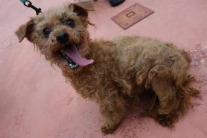 今回は、少し重いお話です。 先日、ハピまるに迷い犬のトイプードルが入って来まし た。名前は「ダンゴ」にしました。 毛はのび放題でした。 |