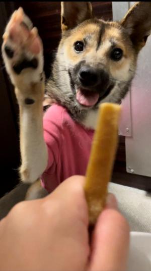 以前もお伝えしたかと思いますが、ちびは穏やかな性格 で少し控えめです。 慣れてしまえば、部屋の中で一緒にはしゃぎます。 興奮しすぎると、こんな顔になります。 そうなんです。 歯をむき出して、はしゃぎます。 |