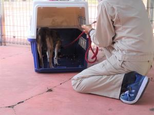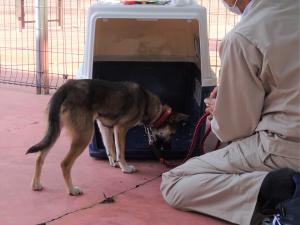 少しずつ、おやつを置く場所を奥にします。 何度も繰り返し、おやつを入れます。 入らなくても、絶対に押したり無理にクレートに入れたりし ないでください。 クレートは、安心できて良いことがあるところ! そう思ってもらうのが一番です。 |