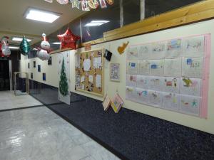 ハピまるから新しい家族として迎えられた犬、猫たちに ついて飼い主さんからの心温まるお手紙が、しばしば届 きます。 だいぶ前、新しい飼い主さんからのお手紙を掲示する 場所を、もう少し目立つようにして欲しいと親方に言われ ていました。 またまた、他力本願! 管理担当職員から知恵をもらい、少しでも収容している 犬や猫たちにも、クリスマスの雰囲気が伝わればという事 で、この際遊び心を満載! 出来上がり具合の相談は親方にはしません。 派手過ぎて怒られないか・・・・