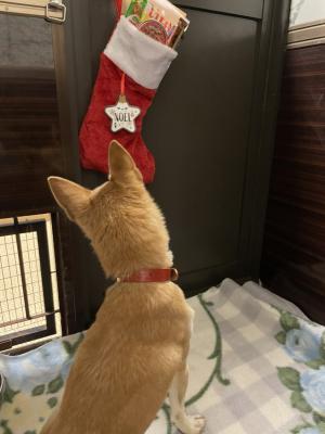 ちびにもプレゼントが届きました。 興味しんしん。 すこーしずつ、おやつにあげたいと思います。