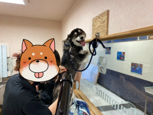 こちらは、「モン太」です。 頭にタオルをのせられたこの写真からは、気持ちよさが 伝わりませんね~。