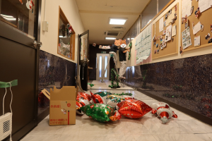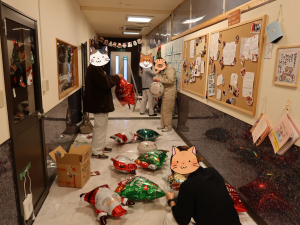 飾り付け開始! お客さんが通る通路をメインストリートにし、昨年よりも 規模を拡大? 少しでもほっこりしてもらえれば! |