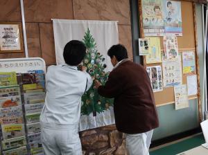 今年も恒例のクリスマスの準備です。 仕事中のハピまる職員、半強制的?に手伝ってもらいま した。