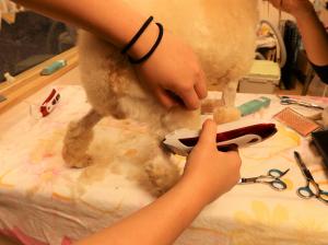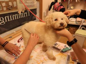 すでに、新しい家族の元で生活している「クリリン」です。 譲渡の準備の為に、管理担当職員がシャンプーをして、 カットをしました。終わったので、親方と親方代理に見せた 時のことです。 二人とも。 「うーん」 「うーん」 なんか、言いたそう。