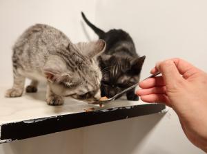 こちらは、わんこたち。 ちびも、また食べています。 お腹痛くしないようにね~!