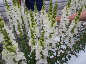夏はトルコギキョウ、冬はキンギョソウなどを栽培することで、花の周年出荷が行われています。