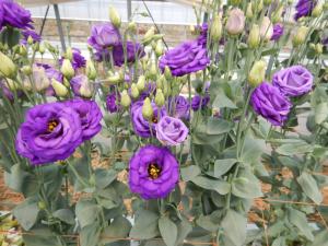 紫や白、ピンク、青、緑等様々な色があり、花の形も一重咲きから八重咲きまで豊富な種類があります。豪華な花と日持ちの良さから通常のアレンジメントだけではなく、ブライダル等様々な場面で利用されています。トルコギキョウという名前ですが、原産地はアメリカで、分類的にも「キキョウ」ではなく、「りんどう」の仲間になります。