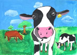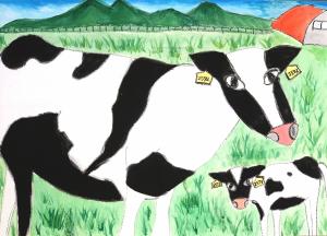 このコンクールは、福島県牛乳普及協会の主催、福島県等の後援により行われたもので、牛乳・乳製品に対する関心を高めてもらうことを目的に、県内の幼稚園児・小学生から牛乳・酪農・乳業にちなむ図画を募集し、優秀な作品を表彰するものです。