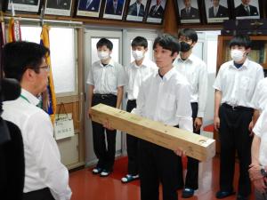 譲渡した木材は生徒の実習で木材保管小屋などに再加工し、校内に設置する予定です。