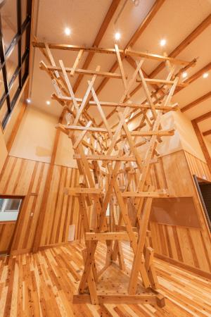 ビレッジプラザ建築資材を再加工し、林業アカデミーふくしま施設内にシンボルツリーを設置しました。また、福島県林業研究センター敷地内に案内看板を設置しました。