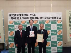 株式会社東邦銀行様からの第69回全国植樹祭協賛に対する感謝状贈呈について