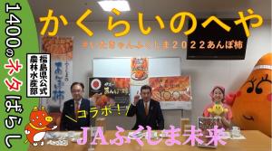 今回はへやを飛び出して、道の駅安達上り線において実施した「おいしい ふくしま いただきます!キャンペーン」で「福、笑い」のPRを行いました。