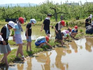「田んぼの学校」は、農村地域の農地や自然環境を学びの場として活用し、「食・命の大切さ」を学ぶ食育、「農業・農村地域の大切さ」を学ぶ社会教育、「自然環境の大切さ」を学ぶ環境教育を総合的に実践する「農育」の取り組みです。