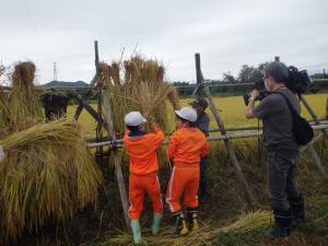 田んぼの学校長の栃窪先生の丁寧な指導により「稲刈り」から「はさがけ」まで児童たちで行うことができました。