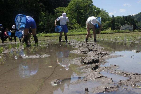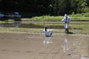 6名の児童は、初めてにしては意外に手際がよく、10アール(1,000平方メートル)の水田を約2時間というスピードで完了させました。
