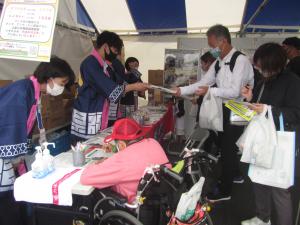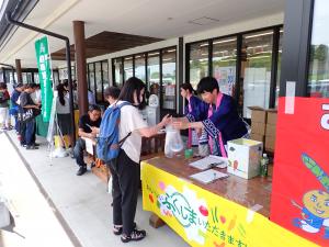 今回のキャンペーンでは、GAP※1や県産農産物に関するアンケート調査を実施し、回答者200名に、相双地方産のGAP認証※2を取得している「甘房(あまふさ)ルビー(ミニトマト)」を当所ブースにおいてプレゼントしました。さらに、県立相馬農業高校ブースでは、同校が生産した農産物や加工品の販売会を同時開催しました。