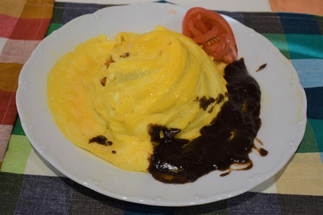 「トマトたっぷりドレスドオムライス」を調理する様子