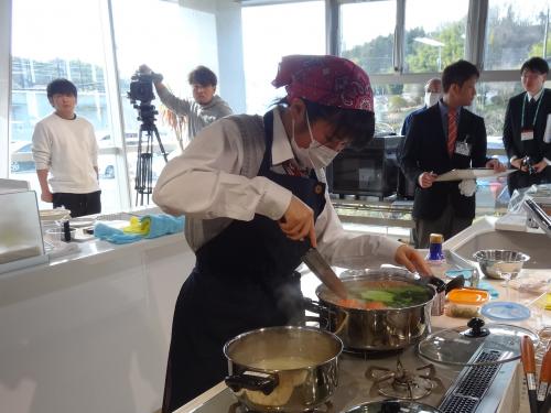 市内9つの高校から55作品の応募があり、1次審査(書類審査)で5作品を選抜し、8名の高校生が調理や作品PRに臨みました。