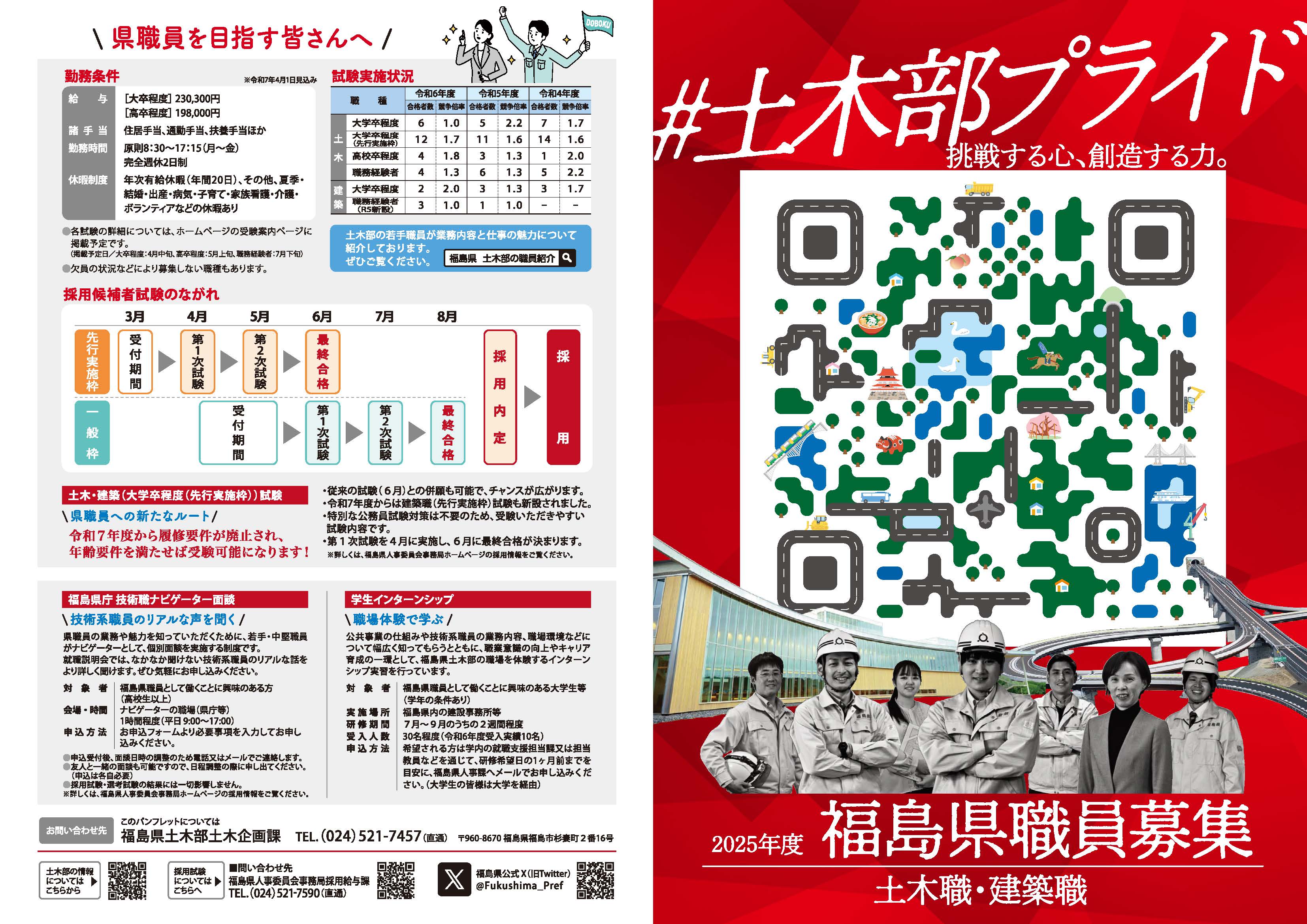 【パンフレット】 2025年度版 福島県職員募集案内(土木・建築職)パンフレット [PDFファイル/3.3MB]