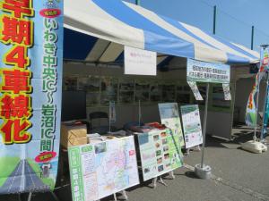 東北横断自動車道いわき新潟線建設促進期成同盟会及び福島県東北横断自動車道建設促進期成同盟会は、磐梯山SA(下り)にて開催された「「極上の会津」観光PR 及び交通安全キャンペーン」において、ブースを出展し、同路線の全線4車線化の必要性をPRしました。