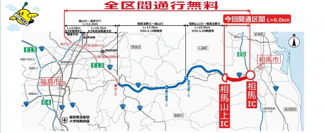 相馬IC~相馬山上IC間の6.0kmが、令和元年12月22日(日)に開通しました。