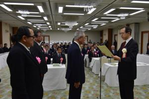 表彰では、建築文化賞の各賞を受賞された建築主・設計者・施工者に、内堀雅雄知事、福島民報社の矢森真人代表取締役専務、福島県建設業協会の小野利廣会長、長澤審査委員長から賞状と記念品が授与されました。