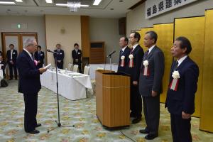 表彰の後、主催者を代表して内堀知事と福島民報社の矢森代表取締役専務からあいさつがありました。