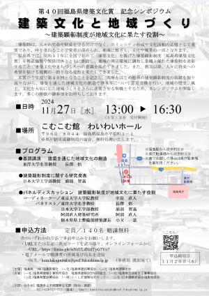 第40回福島県建築文化賞 記念シンポジウム 『建築文化と地域づくり~建築顕彰制度が地域文化に果たす役割~』を開催します。
