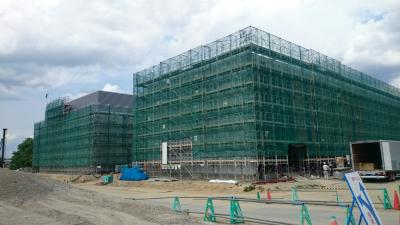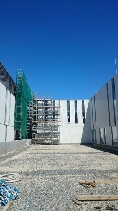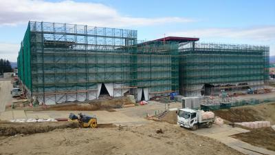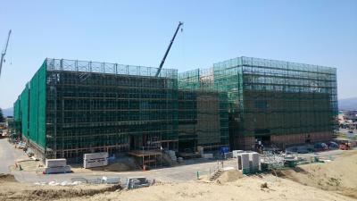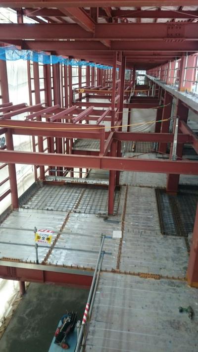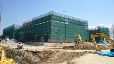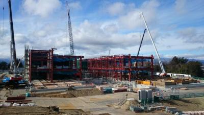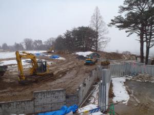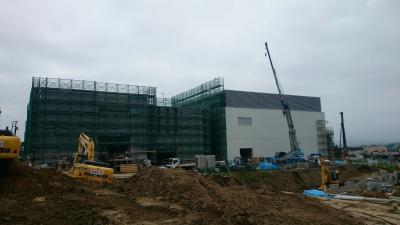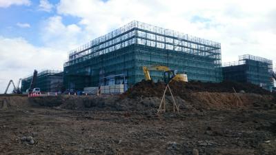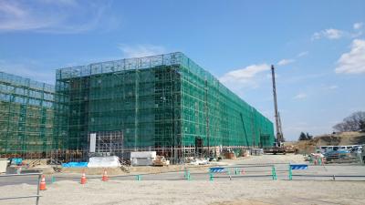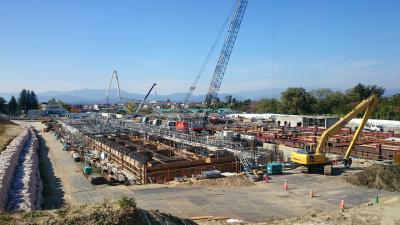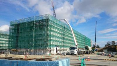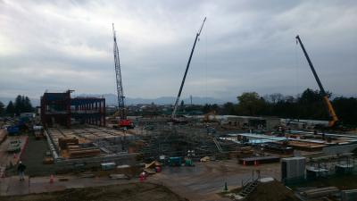 H28.1.12 S棟コンクリ-ト工事、E棟鉄骨建方工事。敷地南西側及び敷地南東側より全景(1月12日追加)