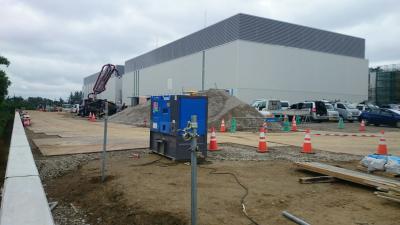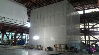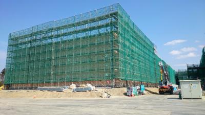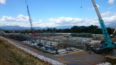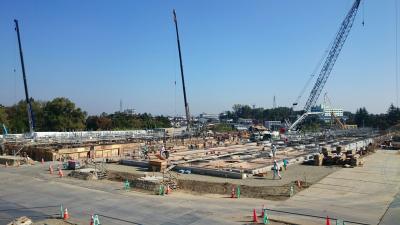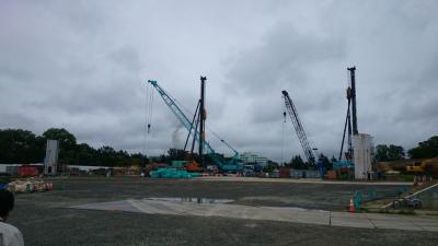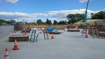 H27.9.29 E棟免震階コンクリ-ト工事、敷地南東より全景(10月7日追加)