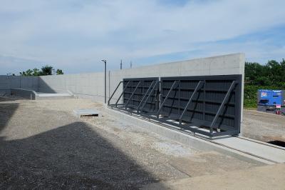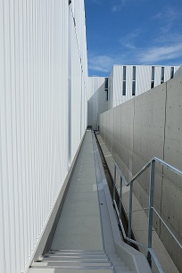 H28.7.1 東側外観 (E棟バックヤ-ドと東調整池)