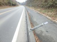 ○交通事故等で道路施設を破損した場合には、原則的に、原型復旧していただくことになります。(道路法第22条の規定による)