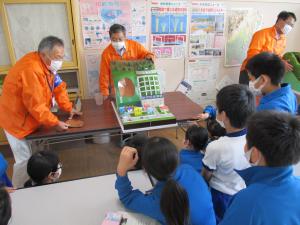 また、砂防ボランティア4名の方々にもご協力いただき、模型を使い土砂災害についてわかりやすくご説明いただきました。