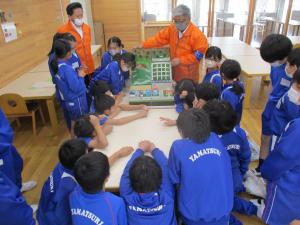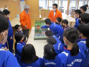 また、砂防ボランティア協会4名の方が模型を使い、土石流発生の仕組みや対策工事の必要性、避難の仕方などをわかりやすくご説明していただきました。