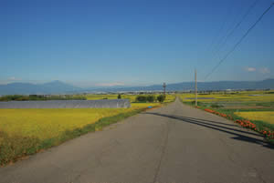 二、県道赤留塔寺線沿線の魅力3 会津信仰の里、雀林法用寺 雀林より高田を望む 雀林は昔、法用寺村といった。古くから法用寺が村の中心であったことは間違いない。この寺ほど会津で注目されている寺はない。それは養老四年(七二〇)創始という古さだけではない。無住の寺で荒廃の色濃き境内ではあるが、それ故、四季折々に深い想いを人々の心に響かせるからである。 心にくい造形の妙、三重塔 法用寺より会津盆地を望む (撮影:平田春雄 「会津人群像」より) 法用寺の雰囲気を演出する者の心にくい造形の妙は、会津で唯一の三重塔(県重文)にある。眼下に会津平野を見下ろせるこの三重塔の前に立つと会津の信仰の里のシンボルとしての風格すら感じられる。同じような感じを持たれたのが、東伏見邦英伯爵である。昭和六年八月、殿下は会津の仏教文化と遺跡を視察されたとき、ここからの眺望をいたく感動され「仏都会津」とよばれたという。まさに法用寺こそ「仏都会津」の代表とも言えるだろう。 法用寺観音堂