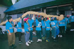 蛇の御年始の行事 蛇の御年始 一月の七日にはこの寺の仁王門に掲げる藁の蛇を下ろし、村の子どもたちが雀林の各家を一軒一軒大声をあげて担いで回り村人はこの蛇に噛んでもらい無病息災を願う。その間、村人たちが新しい藁の蛇を作って門に掲げる。昔、水不足の時、水神の龍を形どってお参りしたところから江戸期より始まったという。隣の集落、米沢には蛇屋敷の地名も残っている。