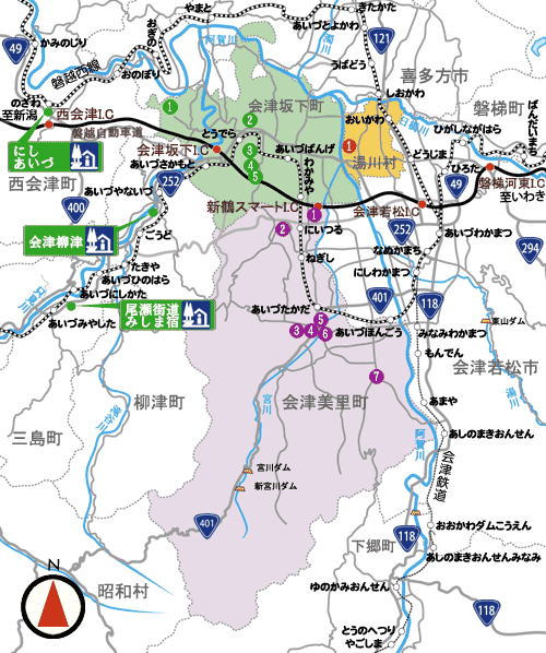 全体図 柳津・三島・金山・昭和 会津坂下・湯川・会津美里 会津若松 さくら回廊 歴史回廊