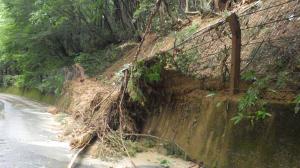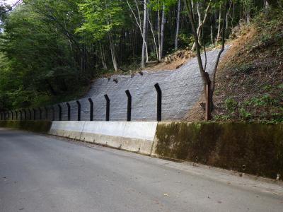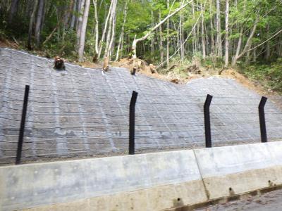 令和5年9月現在 崩落した法面を植生マットを張って復旧し、落石防護柵を新しくしました。
