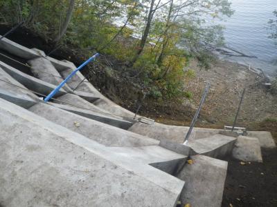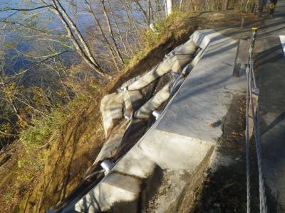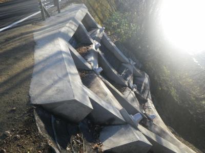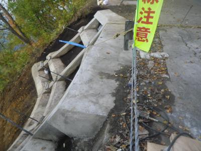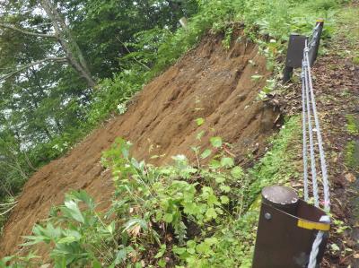 令和5年10月現在 崩落した土砂を除去し、新しくコンクリート枠で法面を保護しました。