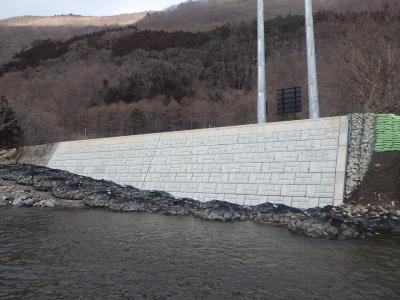 復旧延長 L=25.0メートル(左岸) (護岸工 積ブロック A=153.0平方メートル 警報局復旧 N=1基)