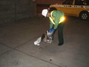 食べたお弁当、飲んだコーヒー缶、そのまま捨ててあります。 雨の中パトロール員が 一つ、一つ拾っていきます。