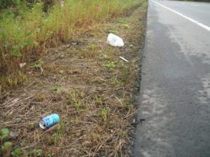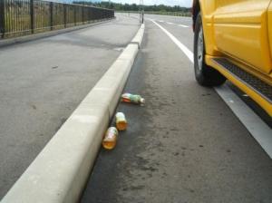 路上には、ペットボトルに中身が入ったまま捨ててあります。