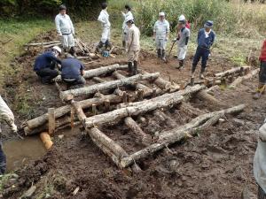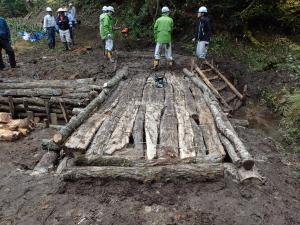 道普請とは、地元住民や地域の活動団体の皆様と協働活動を行い、ともに地域の保全や活性化のための活動を行うことです。これまでも草刈りや沢への架橋などの活動を行って参りました。