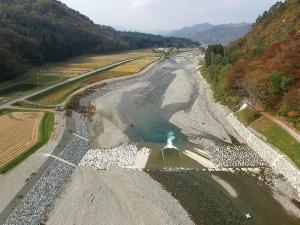 現地の河川の石で護岸を造り、自然の風景・環境と調和していることが評価されました。