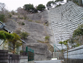 ネットを張り山から石や木が落ちてくるのを防ぎます。